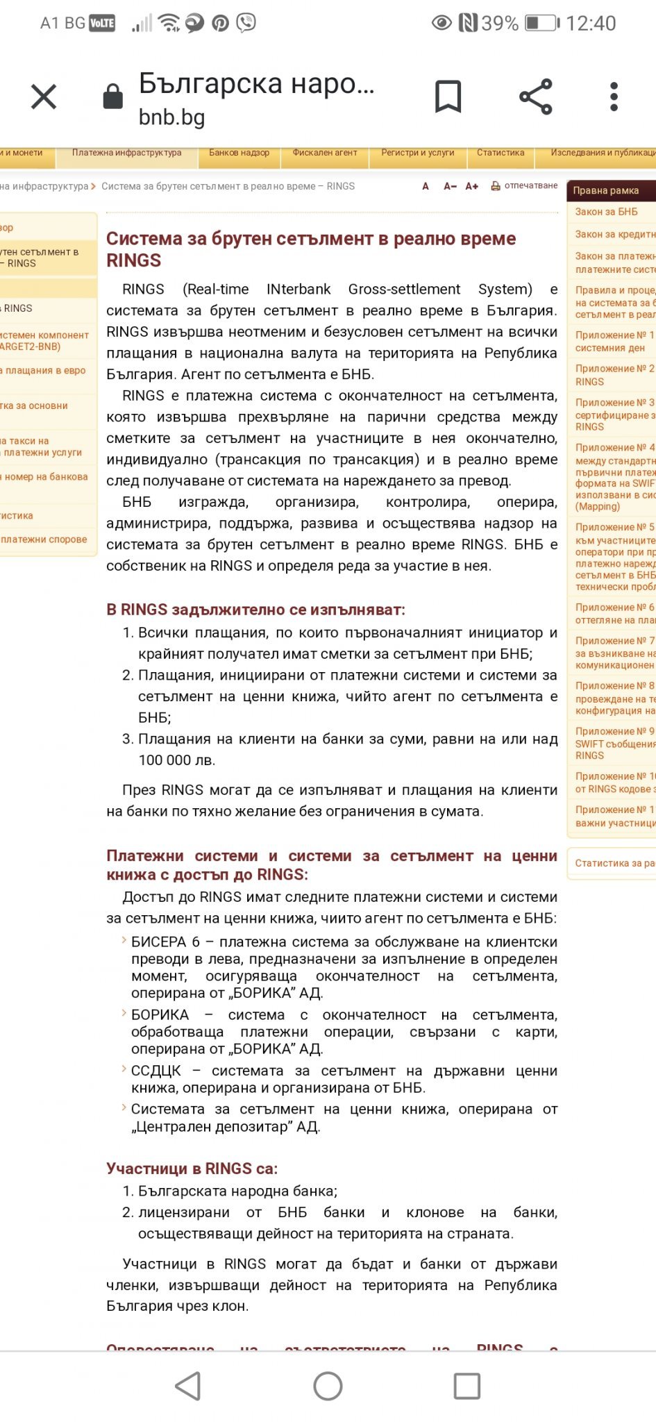 Между другото - след няколко месеца повечето банки в България няма да ползват сегашната система на БИСЕРА и всички разплащания под 100 000 лв. ще бъдат в реално време. В момента се тестват системите.