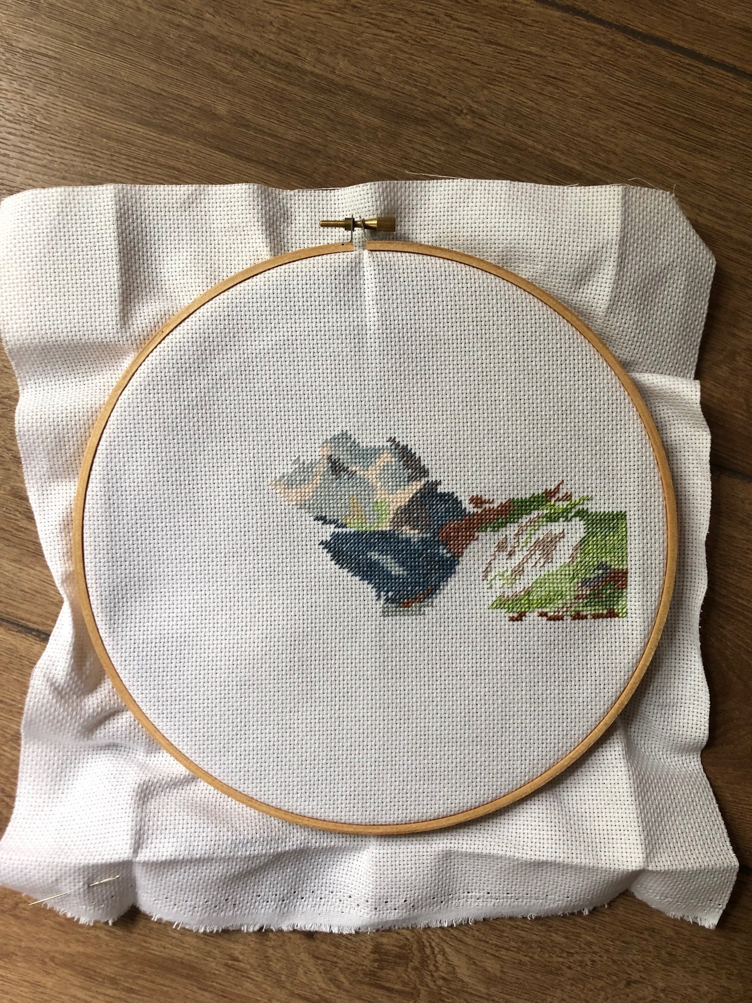 Аз купувам само електронни схеми, но тази фирма не предлага такива, всичко е комплекти, та се принудих, защото много ми хареса това гобленче. Шие се доста по-лесно и приятно от “Езерото Байкал” на Мащакова. Конците бяха смазани и целият комплект миришеше ужасно, като че ли е опакован преди 5 години, но много му се зарадвах - инструкциите са разбираемо написани и схемата е голяма и цветна.