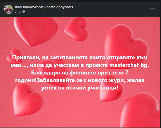 Шеф Михалчев обяви във Фейсбук, че няма повече да бъде част от журито в новия сезон на МастърШеф.