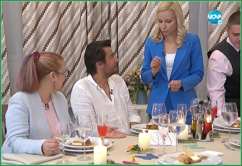 Което е нормално всъщност - на своята си вечеря всеки разказва за себе си, семейството си, работата си, проектите си. Саморекламира се. Това е и замисълът на самото предаване, затова и участват гостите. Но докато другите все пак се стараят и да забъркат по нещо, тя съвсем през просото го удари. Реално нищо не сготви, а само дърдори през цялото време. Манчев даде точна оценка. Към нея 😉