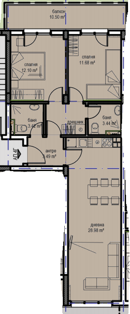 Затова направихме компромис с маломерни спални, за да са две на брой, при цена на тристайния, който купихме,  като на стандартен двустаен. Но с проектиране от дизайнер нещата се получиха така както ги исках и ни устройват. Спалнята от 12 кв.м. е с две легла и гардероб между тях и надстройка над тях, две бюра също с надстройка за книги. И вече една година се ползват от две 11 годишни ученички.