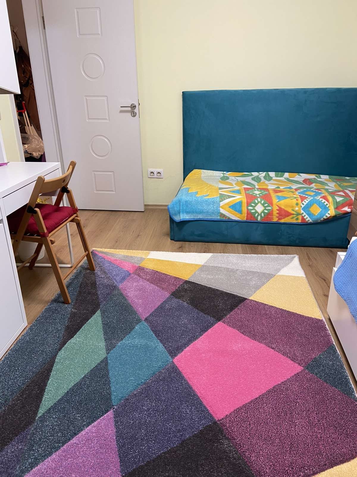 Затова направихме компромис с маломерни спални, за да са две на брой, при цена на тристайния, който купихме,  като на стандартен двустаен. Но с проектиране от дизайнер нещата се получиха така както ги исках и ни устройват. Спалнята от 12 кв.м. е с две легла и гардероб между тях и надстройка над тях, две бюра също с надстройка за книги. И вече една година се ползват от две 11 годишни ученички.