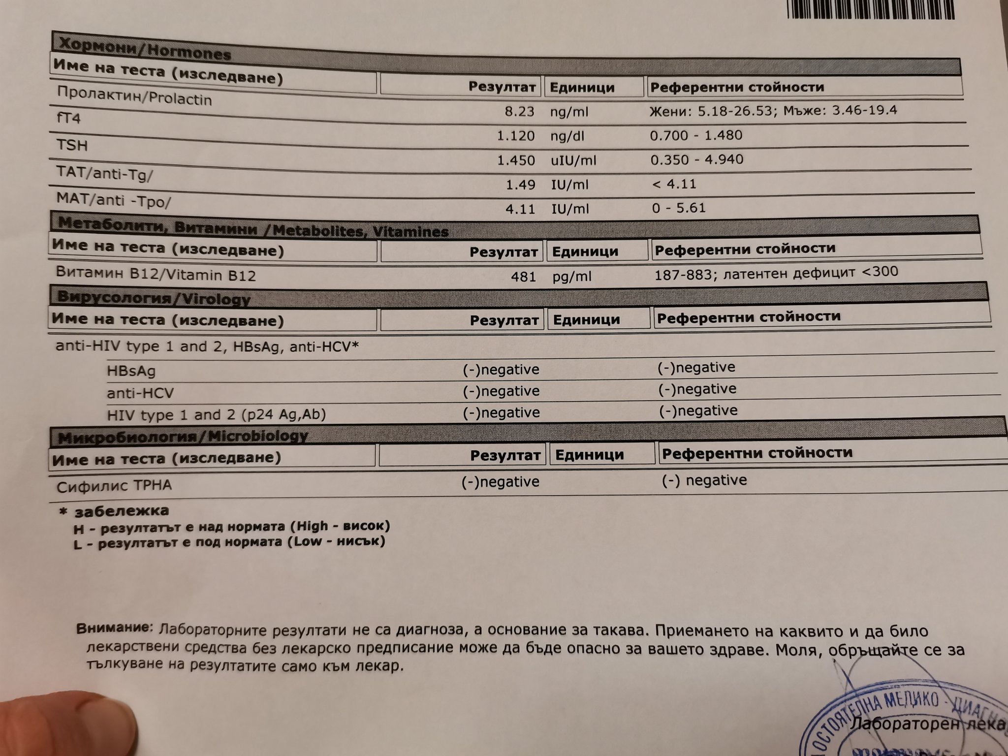 Ето ги резултатите от изследванията които изискват първоначално, без тези по време на цикъл.