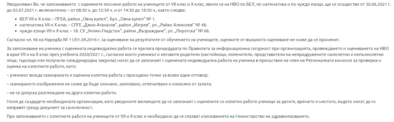 " Заявления от ученици, завършили 7 клас в други училища, ще се приемат само при наличие на свободни места след записването на класираните и приети ученици от НУКК след 2 юли. "