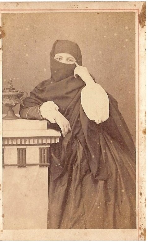 Защото така са се обличали някои жени от Лима, наречени La Tapada. Такъв е бил обичаят и тези жени са били нещо като бунтовници Joy Не намерих много инфо на английски.
