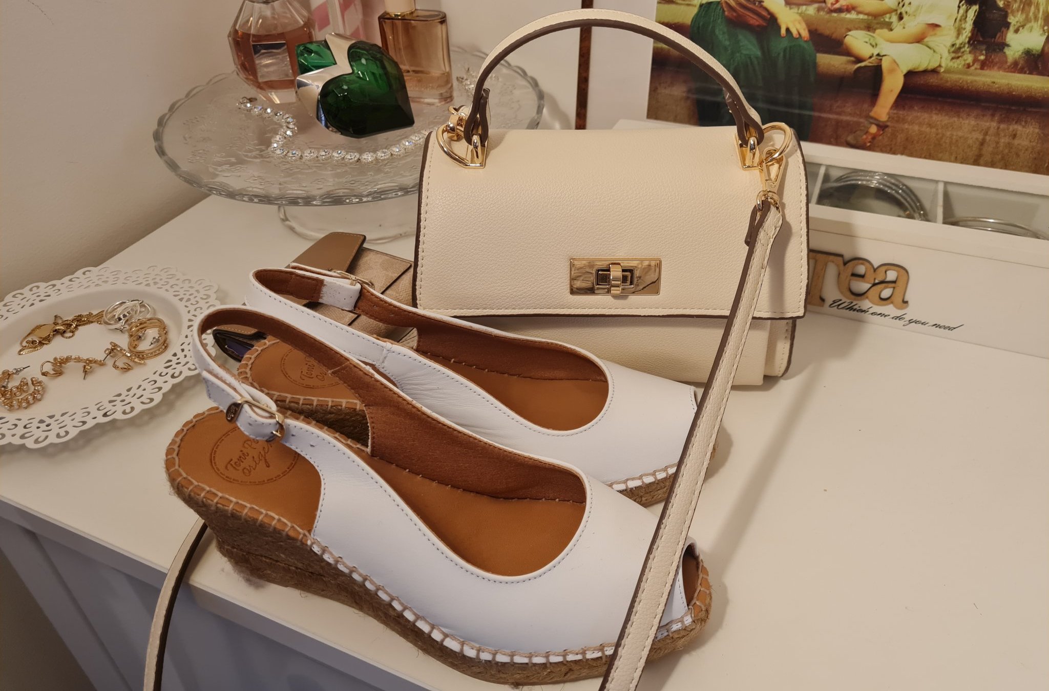 Агент, и аз не съчетавам чанта с обувки. "Другата" чанта която споменах, е също бяла като еспадрилите, но друг оттенък (екрю?). Ще изглежда като нескопосан опит да съчетая, вместо да е различно от обувките. Затова я набедих за неподходяща. Не е достатъчно различна за да изглежда добре.