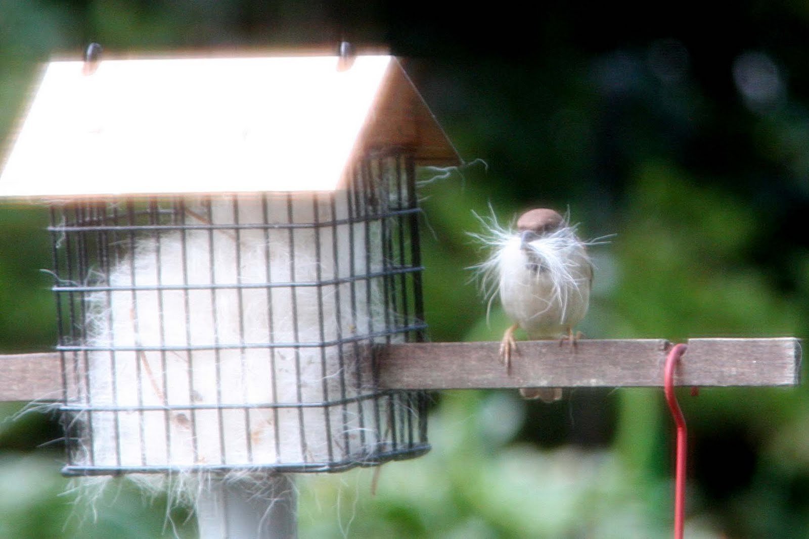 Обикновенно който има хранилка за птици оставя козината ако има и куче за да им помогне.