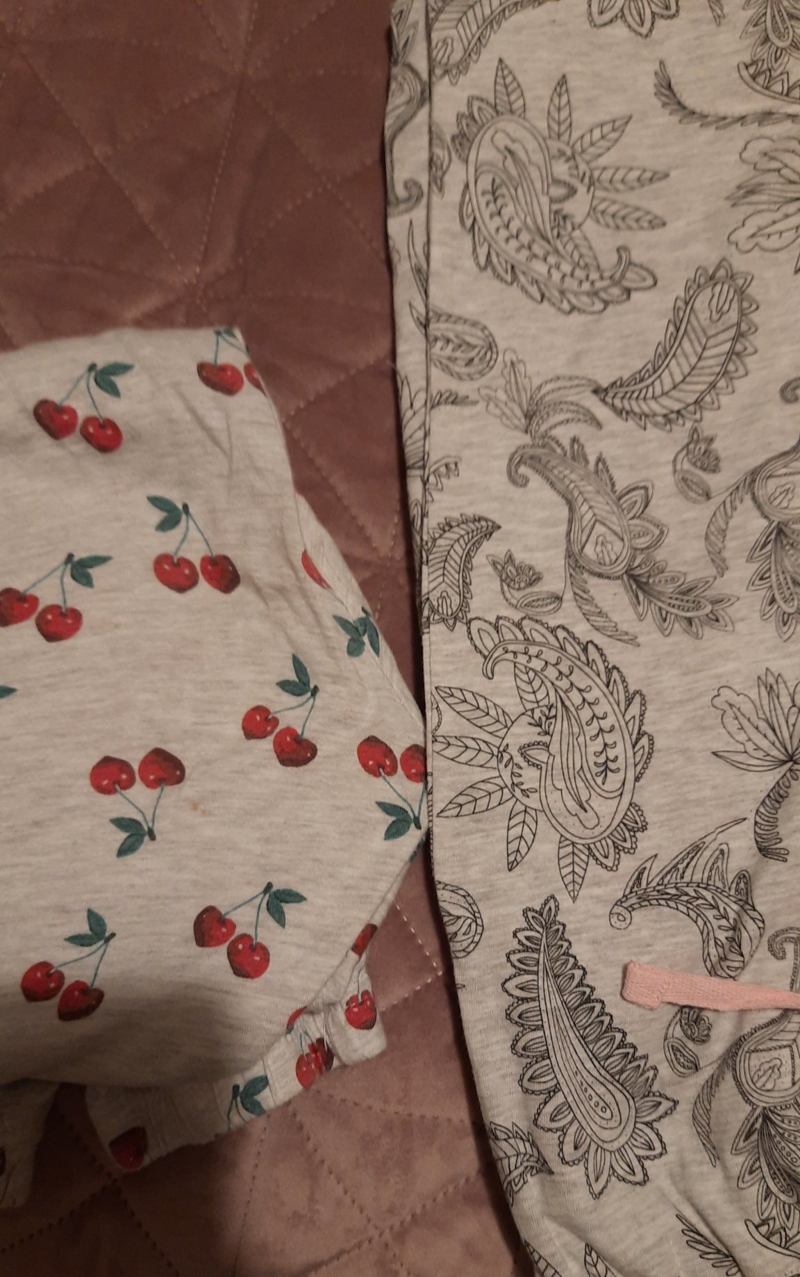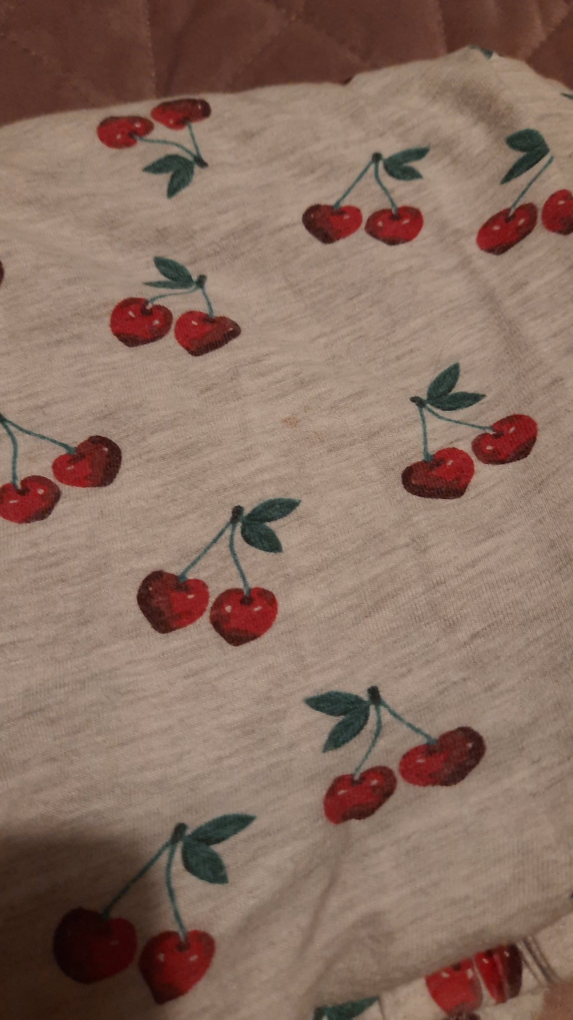 Черешките ги имам и аз,изобщо не е мръднала пижамата .С тениска къс ръкав и къси гащи е.