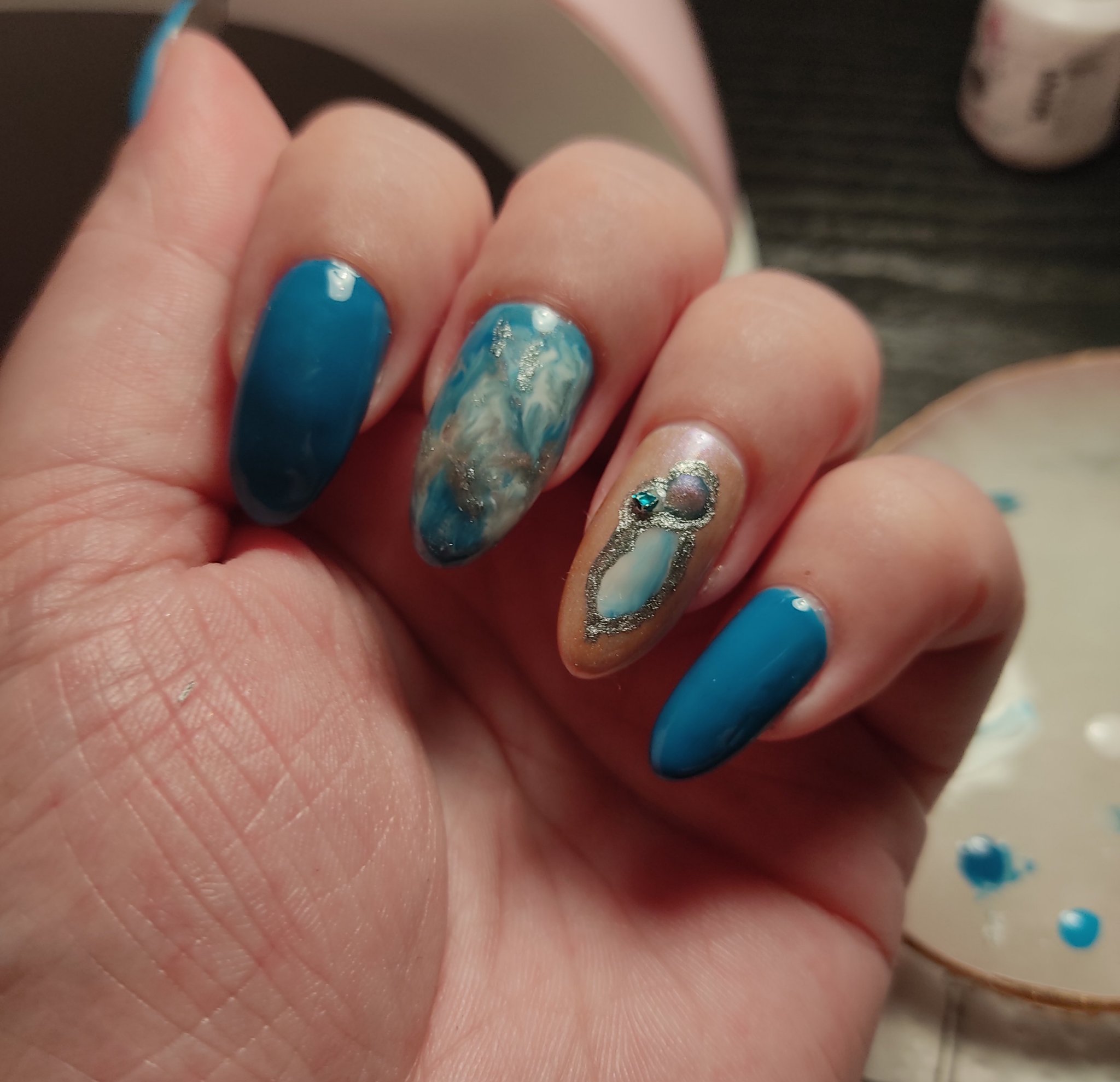 Цвета е номер 3 и е много, много красив. Отгоре съм с топа на neess. За първи път пробвам по-обла форма и според мен стои много нежно.