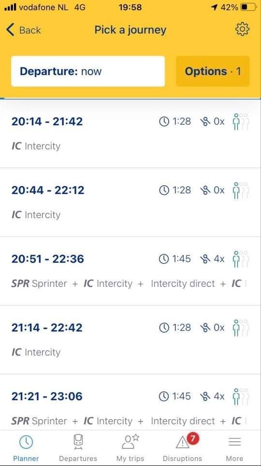 Свали си приложението на ns.nl. Ето снимка на разписанието снощи на дъщеря ми.