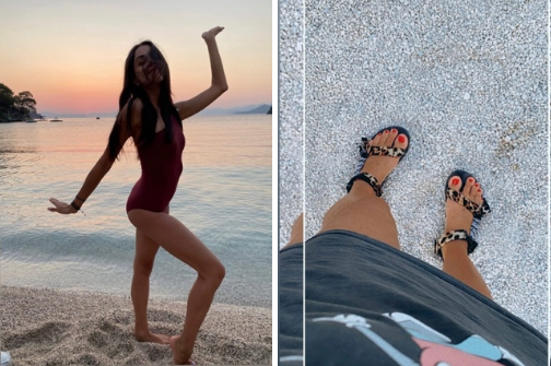 Хюля  се наслаждава на почивка в Алачати със сестрите си. Blue Heart