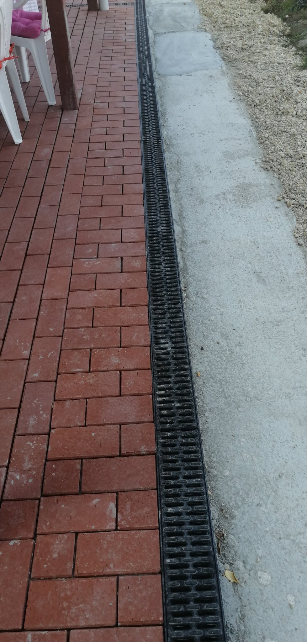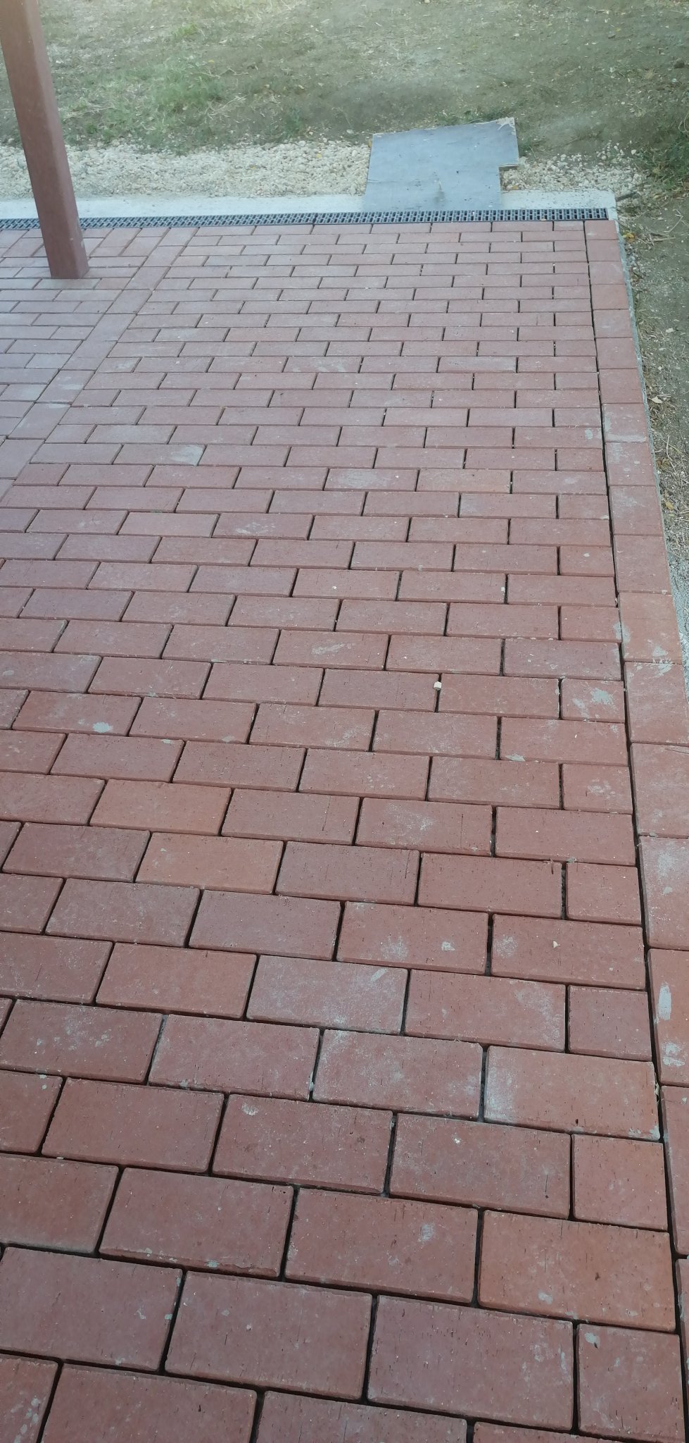 Снимах ти нашия обиколник. Едно мислиш, ама като почнаха да редят има разминаване до половин см. Сменяме шарка в движение и затова има 2 вида. Не е довършено, след линейния отводнителни още ще редят. За колата сме предвидили пластмасови паркоелементи върху излят бетон. Ще сложим пръст, за да има тревичка.