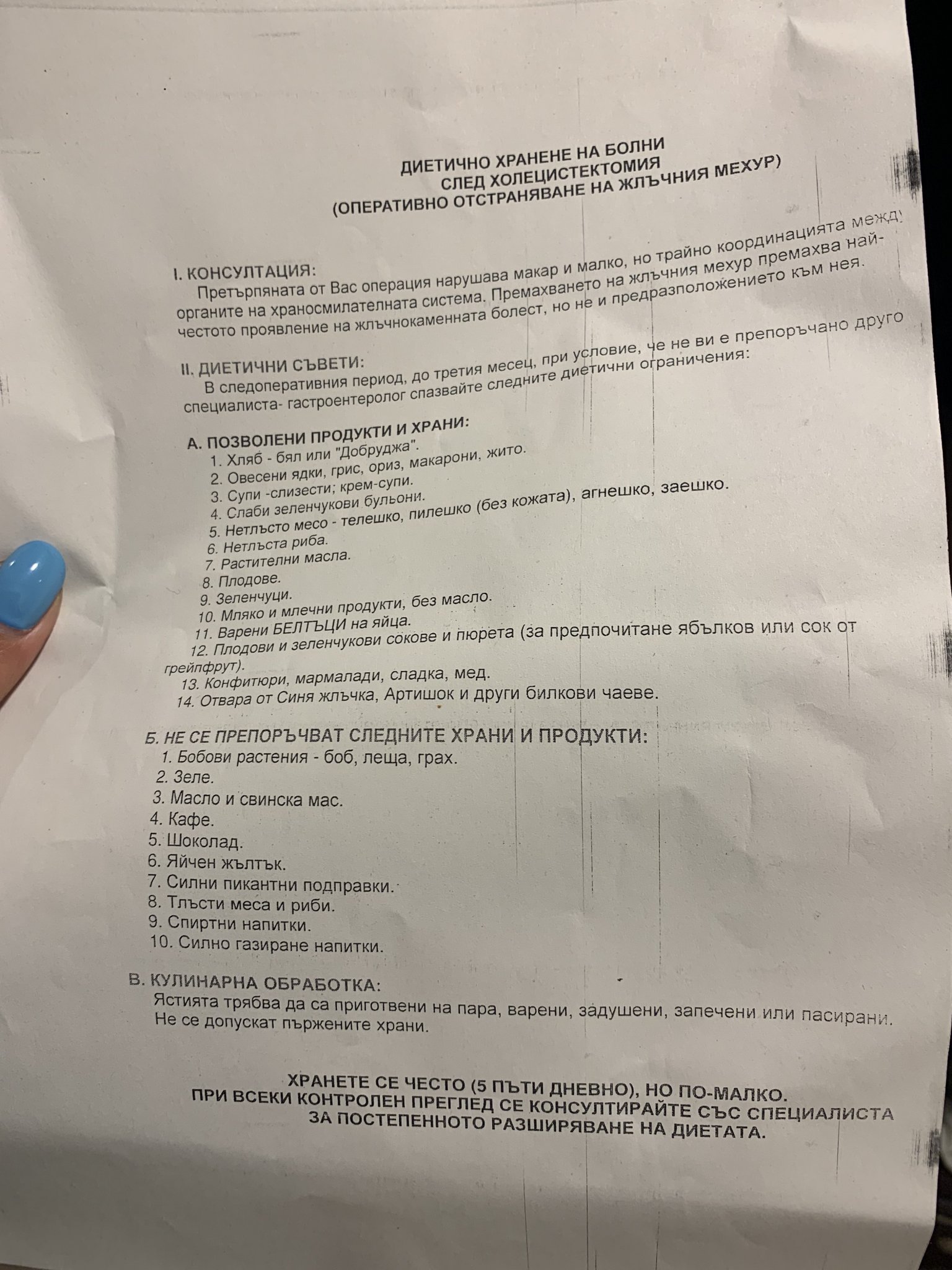 Дадоха ми я още преди операцията и ми казаха да я спазвам, за да не си докарам кризи. След операцията същия списък. ✌🏻