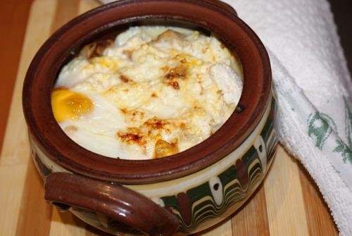 киселеца и изварата се запържват в тефлонов тиган след това се прибавя млякото .Бърка се до постигане на сравнително хомогенна смес.След това се изсипва в тавичка  яйцата се чукват та каче да се образуват порции .Пече се в умерена  фурна докато се сгъсти