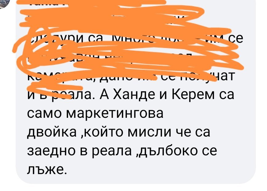 Аз искам да помоля за следното - ако имаме вътрешен човек, който има достъп до такава вътрешна информация, моля, наистина моля да сподели нещо по-интересно за нас, дамите тук. Например: трапчинката на Ханде отблизо; баклавата на Керем в такова качество, че да преброим бенките му; и за финал - въпросната гънка на панталона, че да си разрешим спора с Налбантова, гънка ли е, какво е. Grinning Grinning Grinning