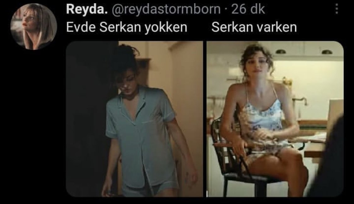 В Туитър са доста наблюдателни - обсъждат пижамата на Еда, когато Серкан не живее в дома й, и пижамата, когато Серкан е в същата къща. Ах, Еда… Grinning