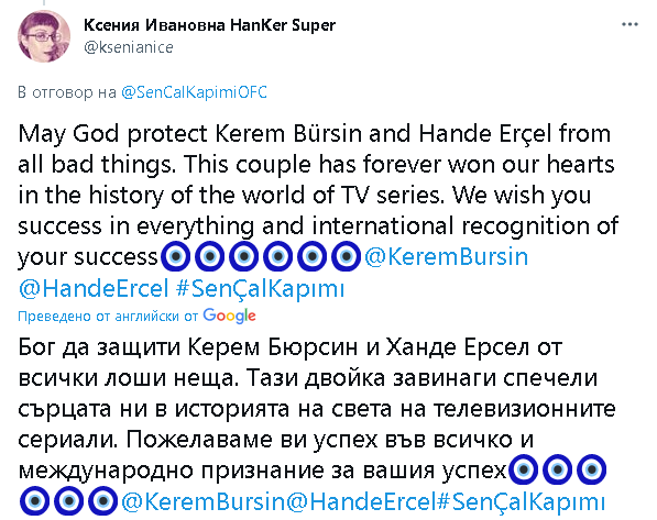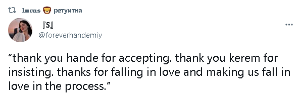 Благодаря ти, че прие Ханде. Благодаря ти Керем за настояването. Благодаря, че се влюбихте и ни накарахте да се влюбим в процеса