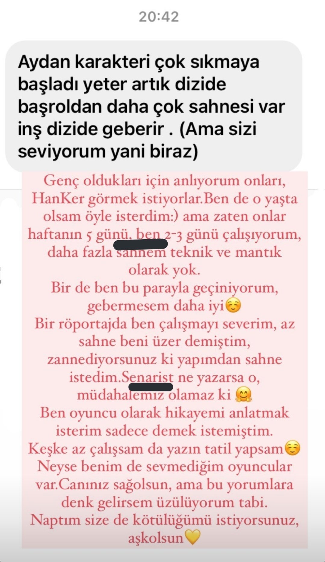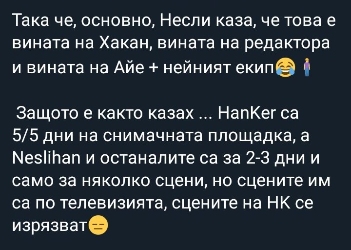 Така е, не сме просто фендом, а семейство, когато се отнася до нашия сериал, Ханде и Керем. Много ме радва това, че сме единни и се подкрепяме. Керем поведе във временното класиране и Миднайт номинира Ханде. Вече мога да си легна спокойна. Grinning