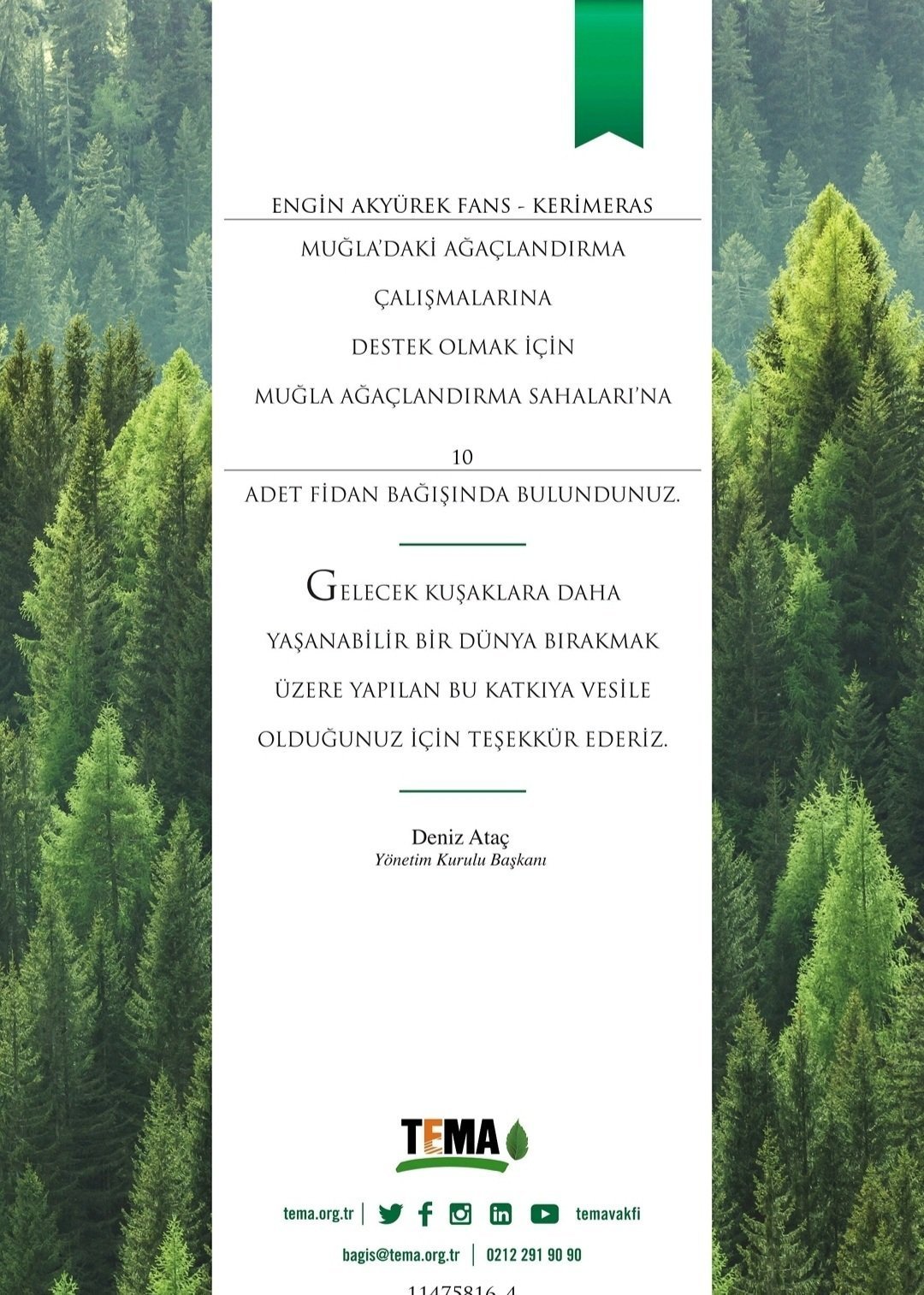 Благодарни сме на безмилостното гасене на национални и местни обществени институции и организации, на екипите и гражданите, които се опитват да спасят животи с цената на живота си, на мобилизираните неправителствени организации, на нашите служители, дилъри и на всички, които дадоха финансова и морална подкрепа за спасяването на нашата красива Турция.