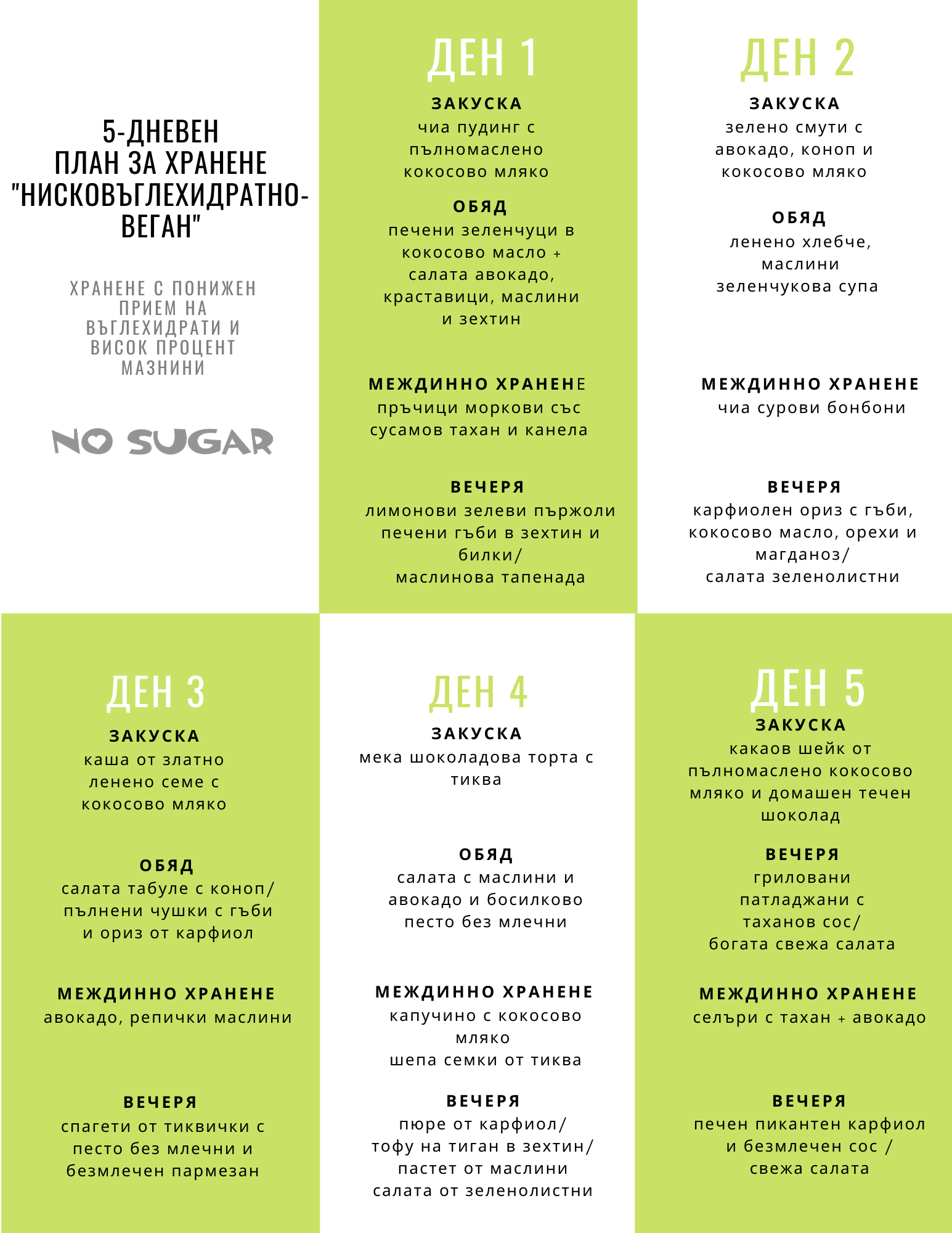 И ето едно веган нисковъглехидратно 5 дневно меню