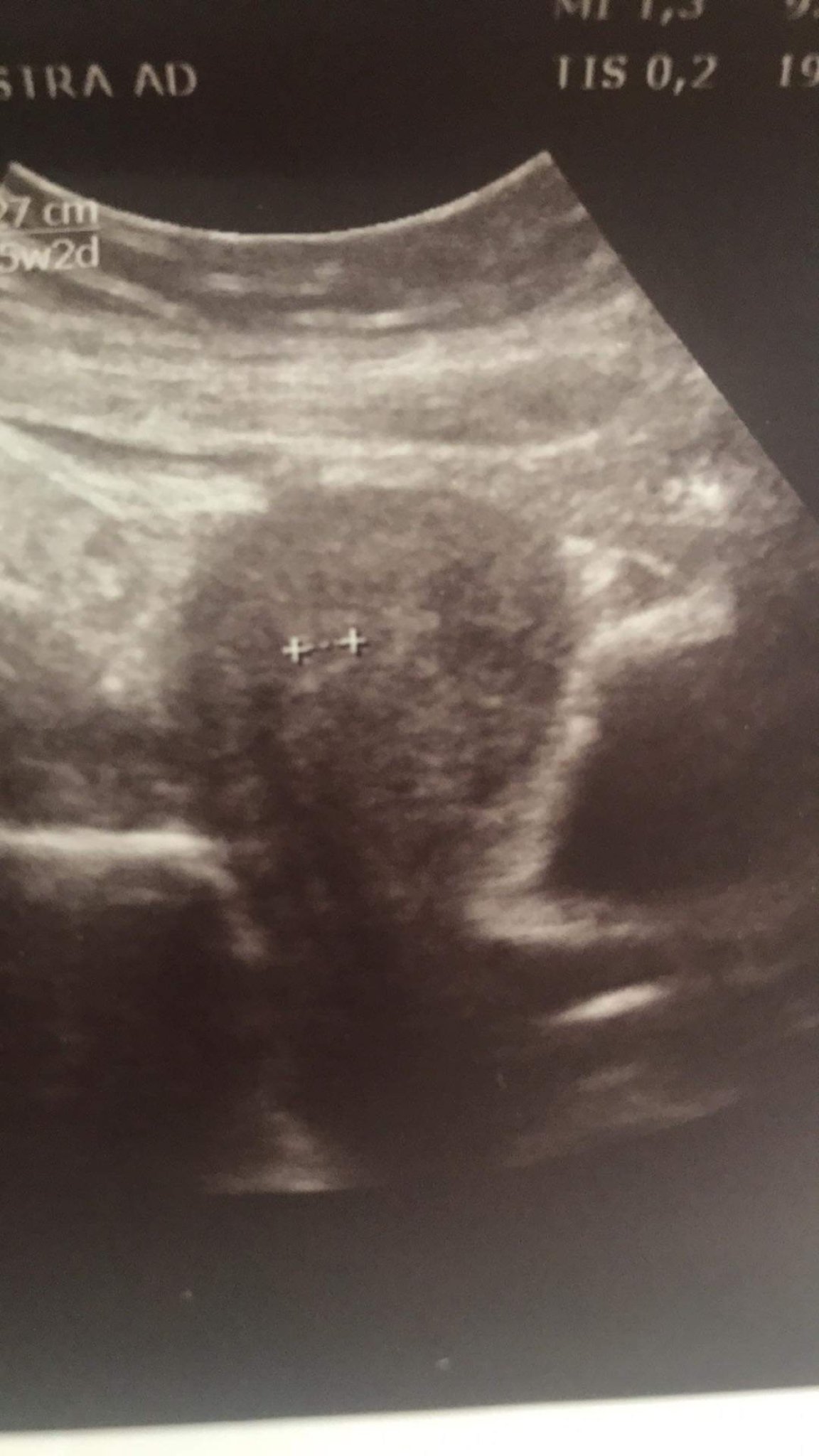 Здравейте ! Първият ми ден от последната ми менструация беше на 20.09 ( като имам нередовен цикъл ).След няколко положителни теста , днес беше и първият ми преглед . Ще прикача снимки от него . Според лекаря съм имала късна овулация и съм още в самото начало на бременноста . Видя се правилно закрепено плодно сакче , с големина 4мм ( около 5 и 6 г.с), но без ембрион , защото е още много рано . След 2 седмици пак съм на преглед . Притеснява ме големината на плодния сак , не е ли малък ?