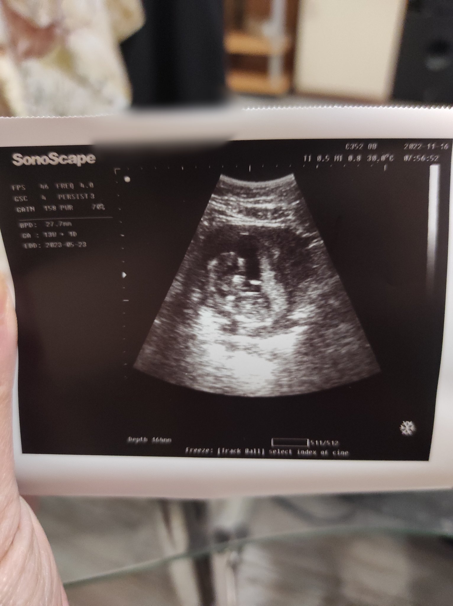 Ембриона в 13 гс не е почти 3 см, моля ви….. bpd което според вас е дължината, е само обиколката на главичката. Спрете с грешната имформация. А вие Гери отидете на друг гинеколог, който ще ви дава повече обяснения. На снимката в дясно пише часа, снимката едва ли е на друга жена