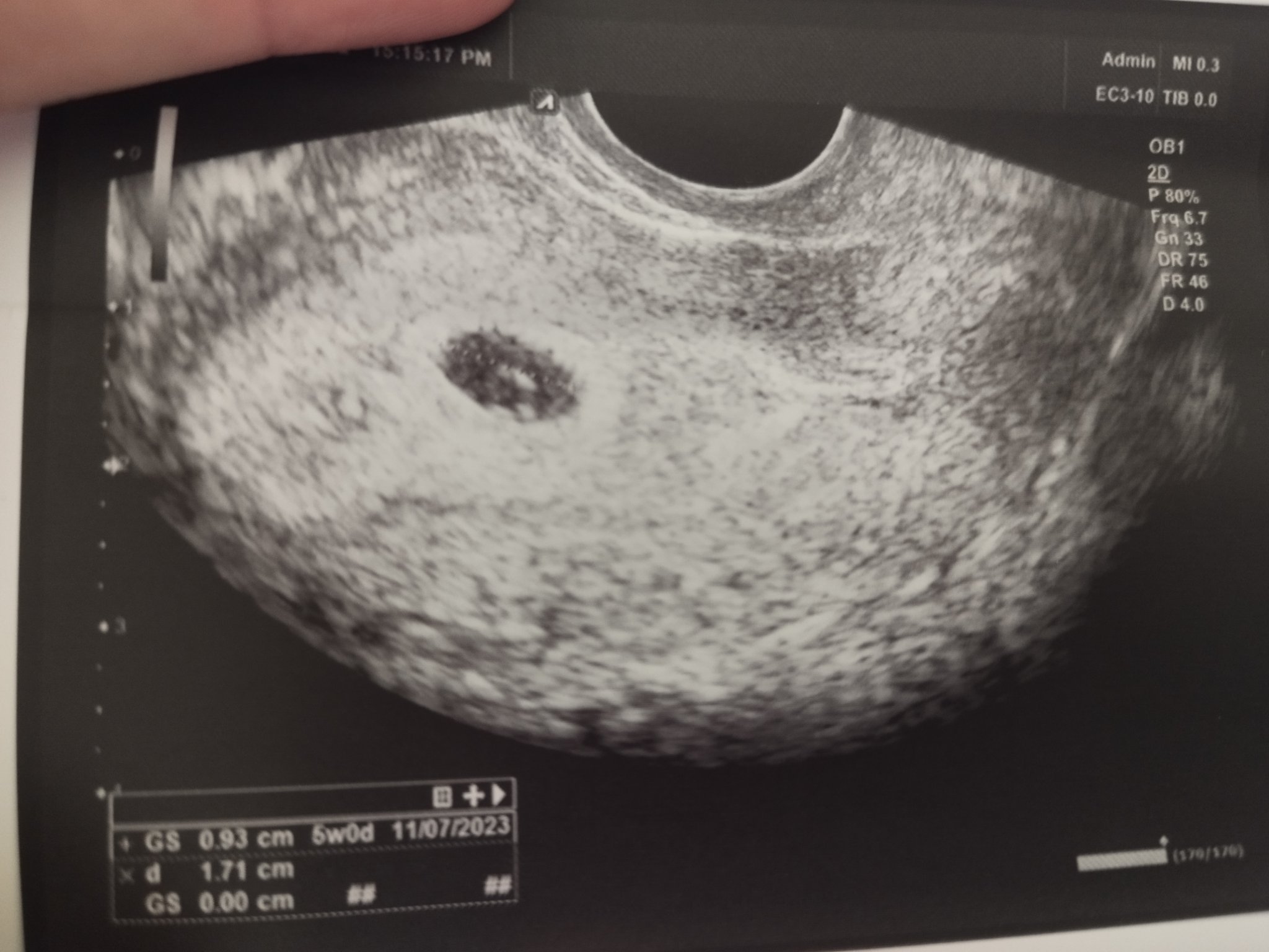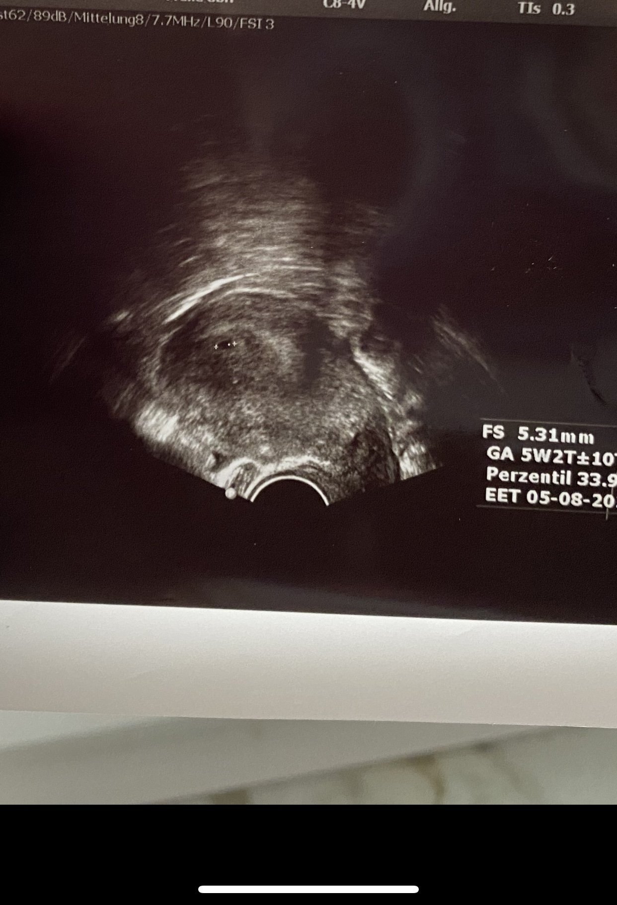 Здравейте, това е снимка от ехограф в 4 г.с + 5 дни. След две седмици пак сме на преглед и тогава може би ще чуем тоновете на бебчето ♥️ първо да Ви попитам това голямото кръгче е плодното сакче, а по-малкото жълтъчно мехурче, а не ембрион? От вълнение, че бремеността се потвърди забравих да попитам много неща 😀 Благодаря!