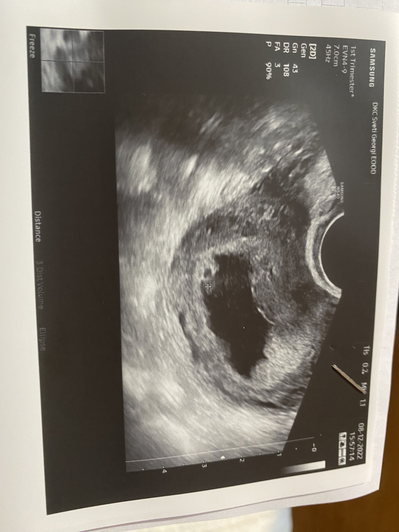 Здравейте! Ако може да ми разчетете снимката какво се вижда, за да не се тревожа . Докторът каза ,че до момента е без оформено ембрио и тогава тази точица жълтъчно мехурче ли е?