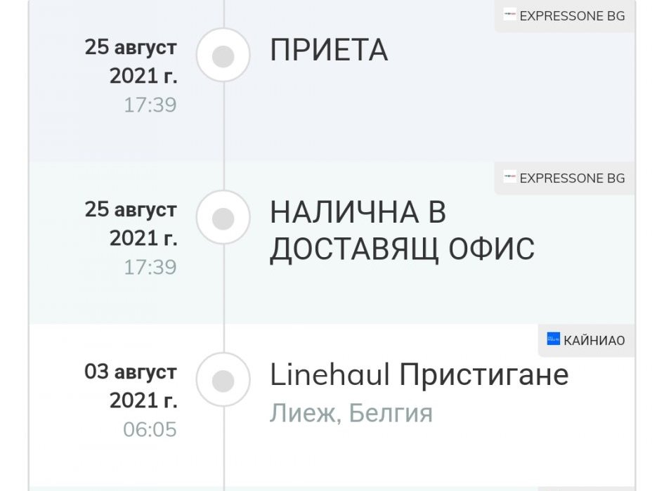 В другия изписва, че е приета от компанията за доставка, на другото място не я намира