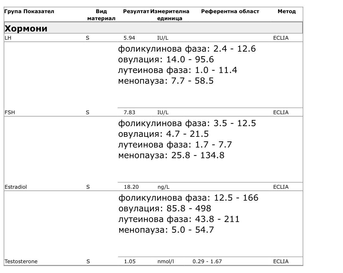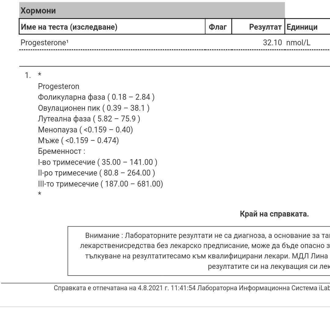 Жаси, изглеждат ОК хормоните, спрямо референтните граници, но най-добре АГ да си ги разтълкува. Моят аборт беше ноември и също още не се е получило, но реално имаме само 3-4 месеца реални усърдни опити. Аз на моя малко му скръцнах да влезе във форма, че се беше запуснал и храненето и то беше с много джънк, та белким да не скапва сперматозоидите Grinning Аз също минах сега на по-здравословно хранене спрямо моя организъм и се надявам живот и здраве наесен да имаме вече успех. Моята терапия е с аспирин впрочем (PAI 4G4G, MTHFR и MTRR мутации), вече след установяване на плоден сак ще дискутираме фракси/клексан.