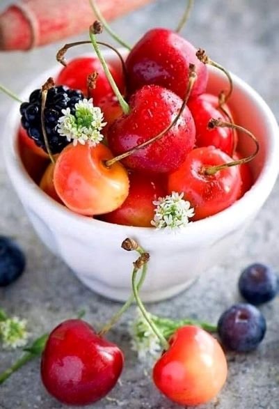 Аз преминавам на сутрешните закуски на Ханде. Разбира се без ягоди, но задължително с черешки.  Прекрасни плодове, съчетани с едно много силно и вкусно кафе.