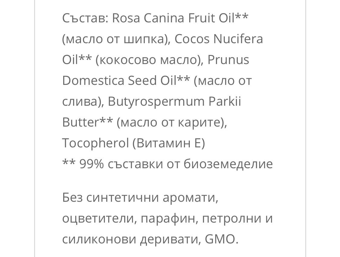 Във фейсбук има една група Инфармацки, която ми беше много полезна. И аз се бях насочила към Био-ойл в началото преди да се поинтересувам какво е ок и какво не е. Разчитах на това, че щом се подчертава, че е за бременни, би трябвало да е изчистено, ама нъцки… Точно преди да го поръчам, в същата тази група, имаше пост за това и тогава започнах да се интересувам чак…