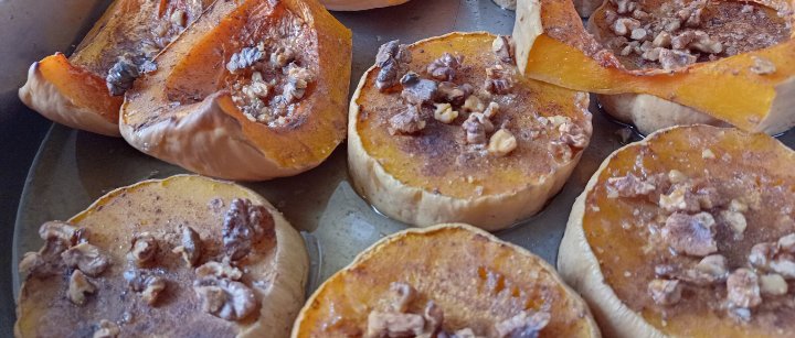 Печена тиква с мед, канела и орехи