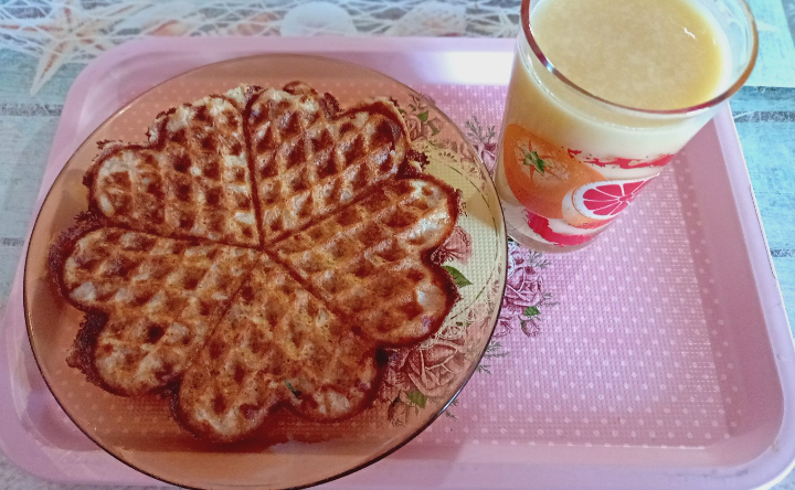 Кашкавалени гофрети с брашно от лимец и мляко от пъпешови семки