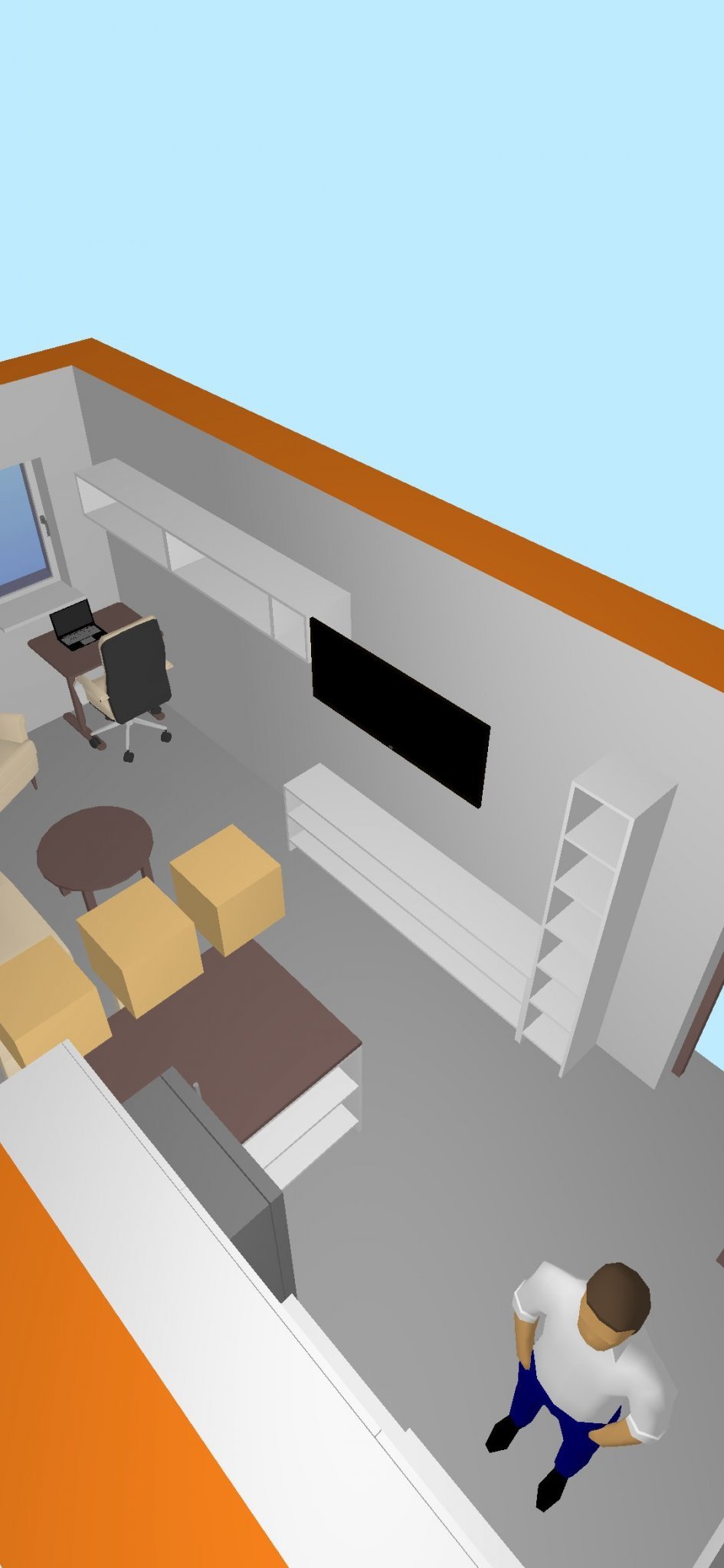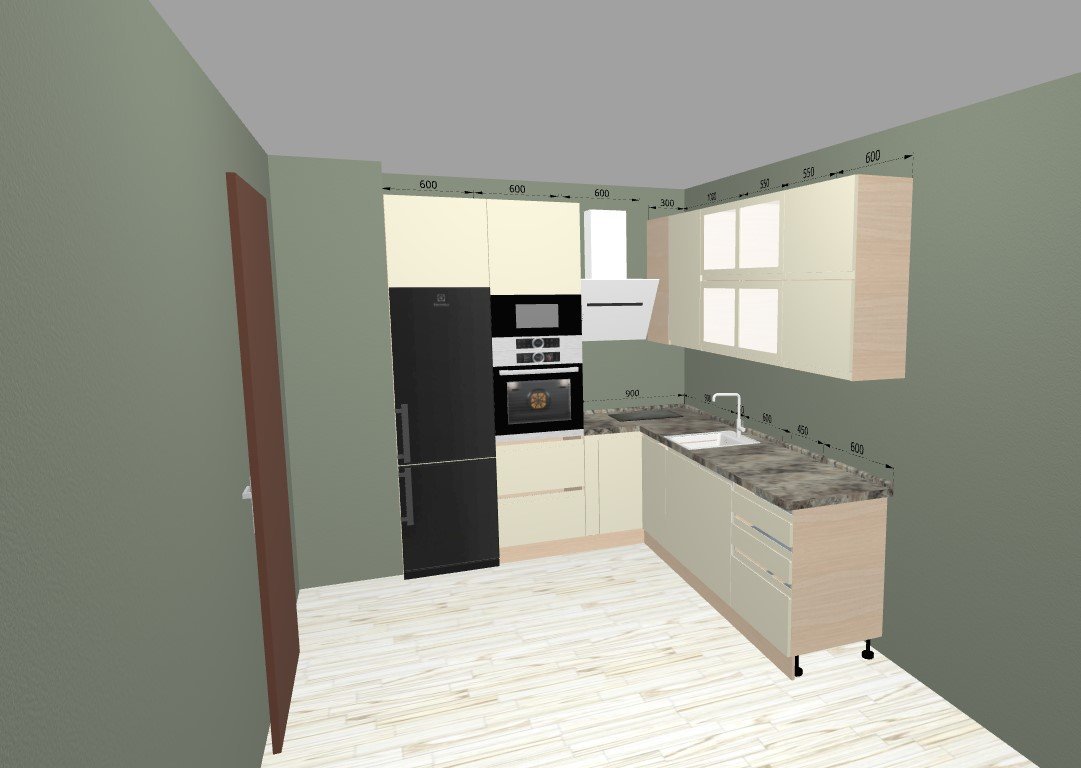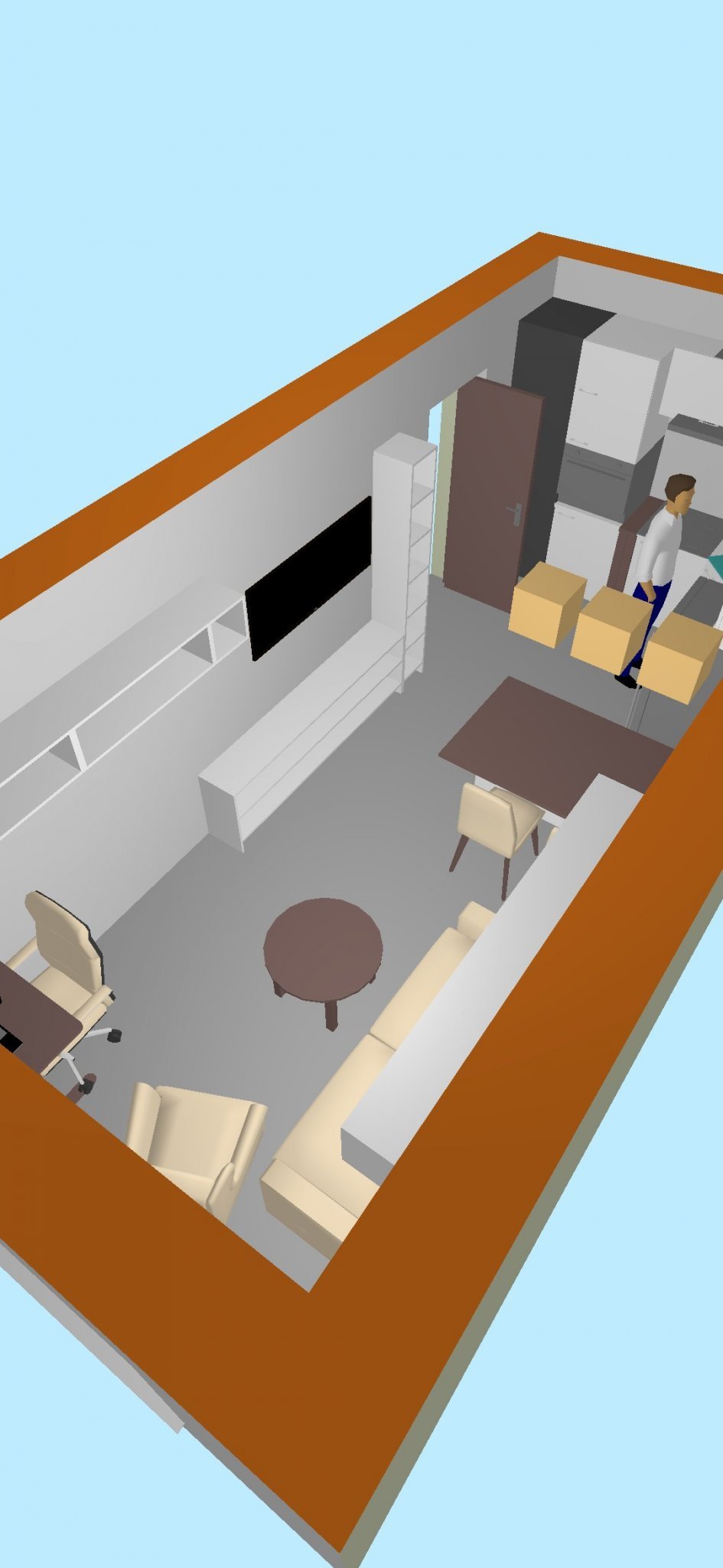 Това натворих. Човекът е висок 1.80. кафявото нещо до колоната с фурната е бутилиера. Оранжевите виснали кубчета са лампи. Всичко бяло са шкафове или рафтове. Съдомиялната е пред човека. Горният ред е височина 170-220. Мога да пребоядисам, ако нещо не си личи какво е, но утре.