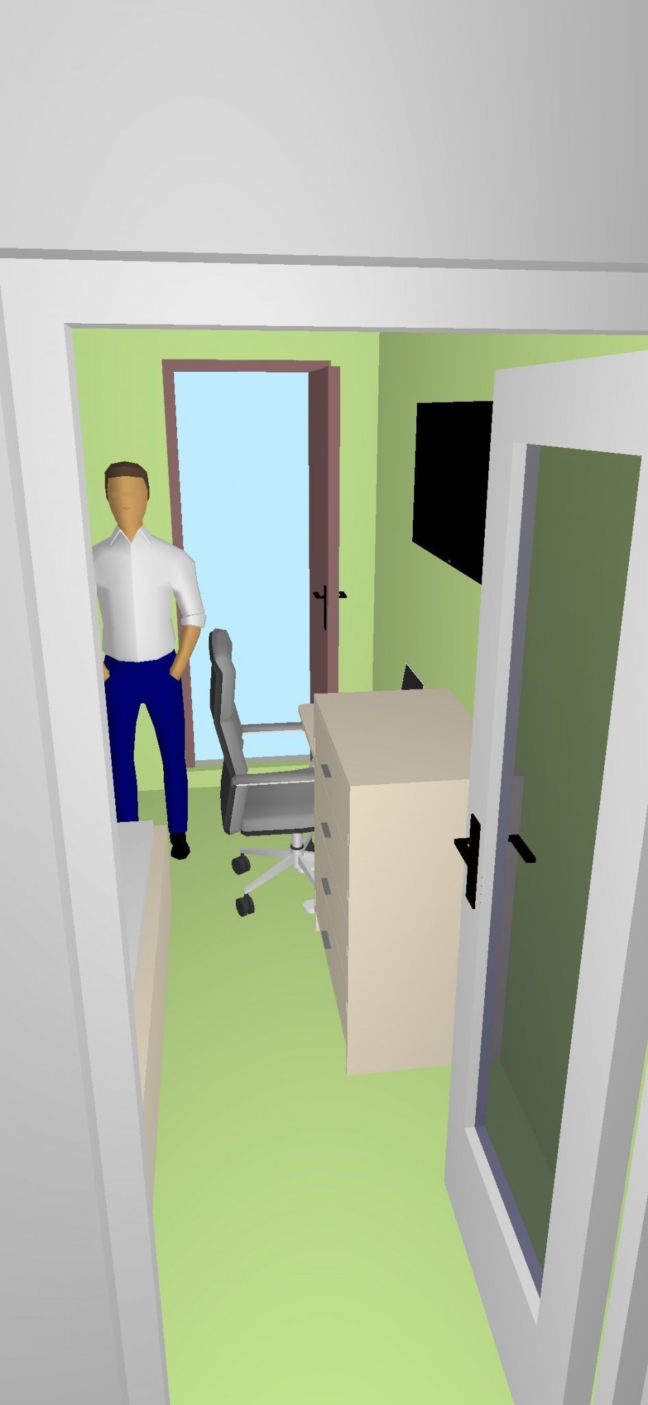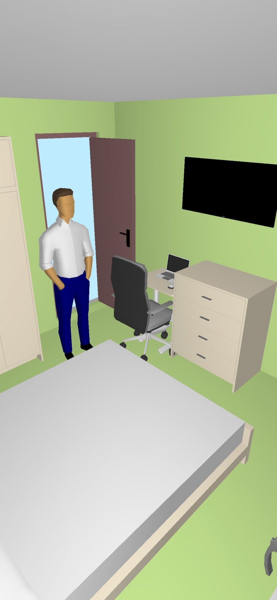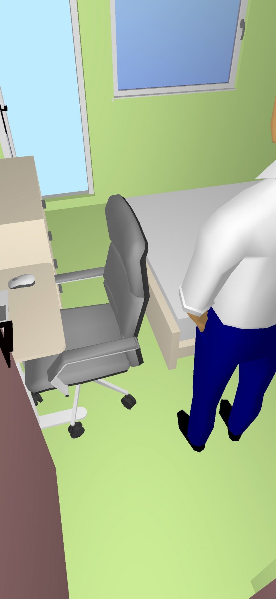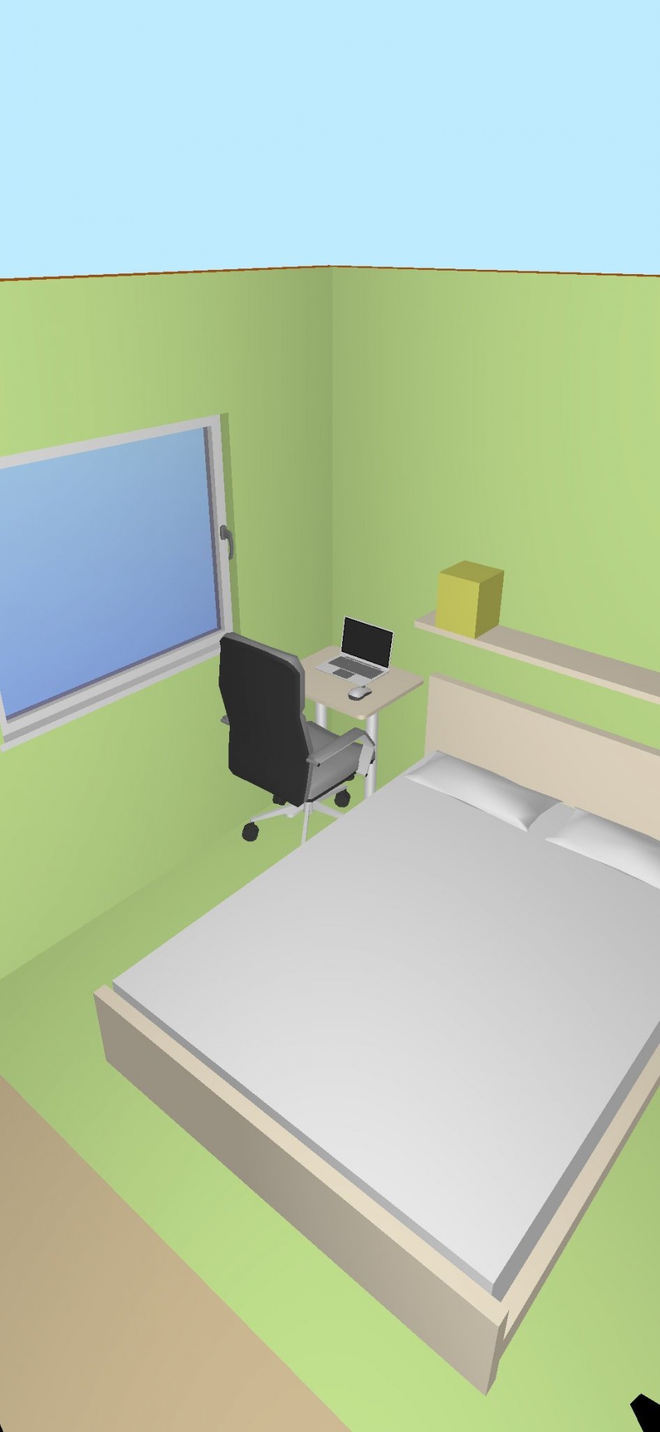 Може да се сложи бюро срещу леглото между балконската врата и вратата на стаята. Може също и малко бюрце между леглото и прозореца вместо нощно шкафче.