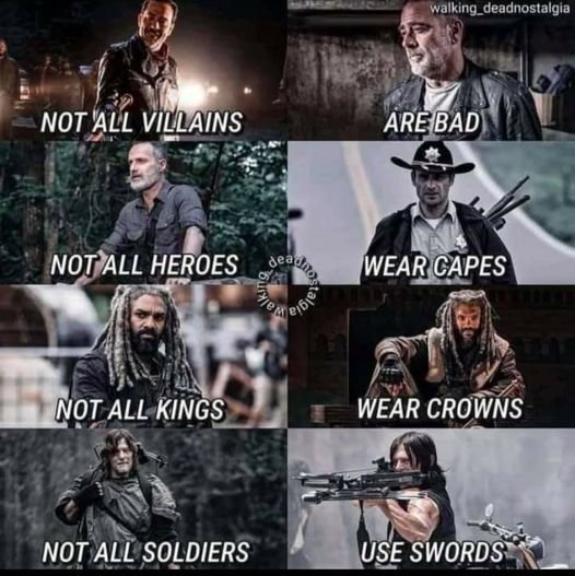 всички убиват хора, включително и нашите, зависи от гледната точка. Но да едните го правят за да завладяват, а други за да се предпазват... Има разлика. Но не знаем дали лично Лия е убивала, а и тя няма голям избор, виждаш какво правят с предателите (изгорения завързан за дървото, който бе намерен от Ниган и Маги)...