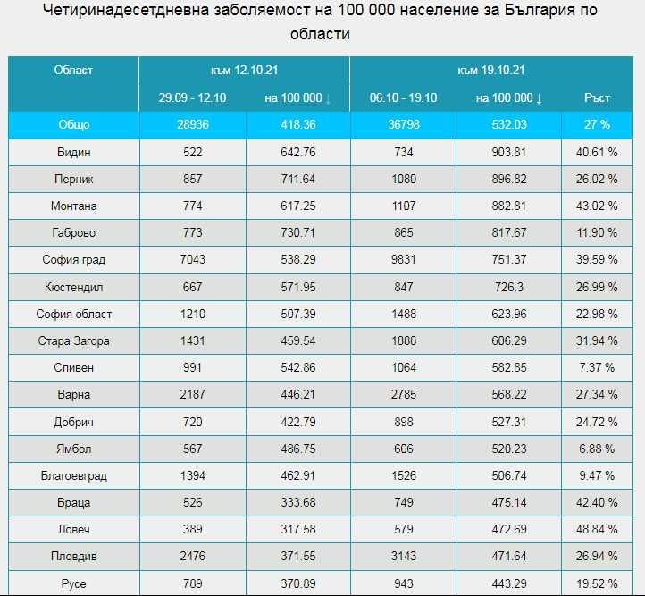 С тези темпове на нарастване - към 40% ръст за седмица, не ми се мисли какво ни чака в най-засегнатите райони. А ония там "умници" да мислят още, да не бързат - всичко си е наред...
