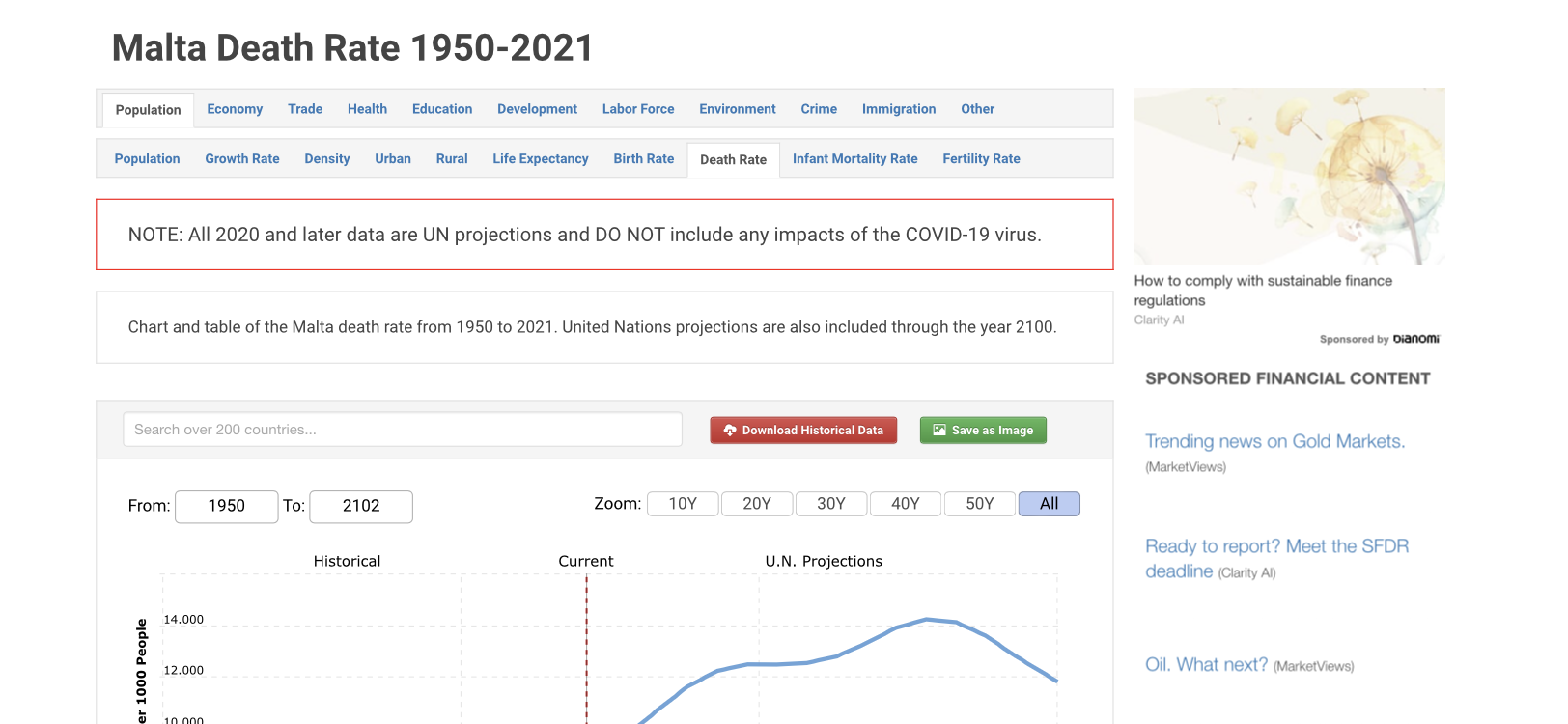 данните за Малта от 2020 г. насам са проекции на данни на ОН и не отчитат ефекта на САРС-КОВ-2 вируса.