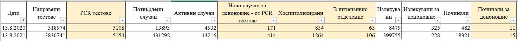 аз точно вчера си играх да направя сравнение къде сме в сравнение с една година назад, именно сравнявайки само данните от PCR-тестовете, и... не, не сме хич добре като за това време на годината; вчера мернах един от учените, които следвам, който каза кратко - урокът от Израел за всички е, че короната не е победена, лятото е само въведение. Следва Зимата.