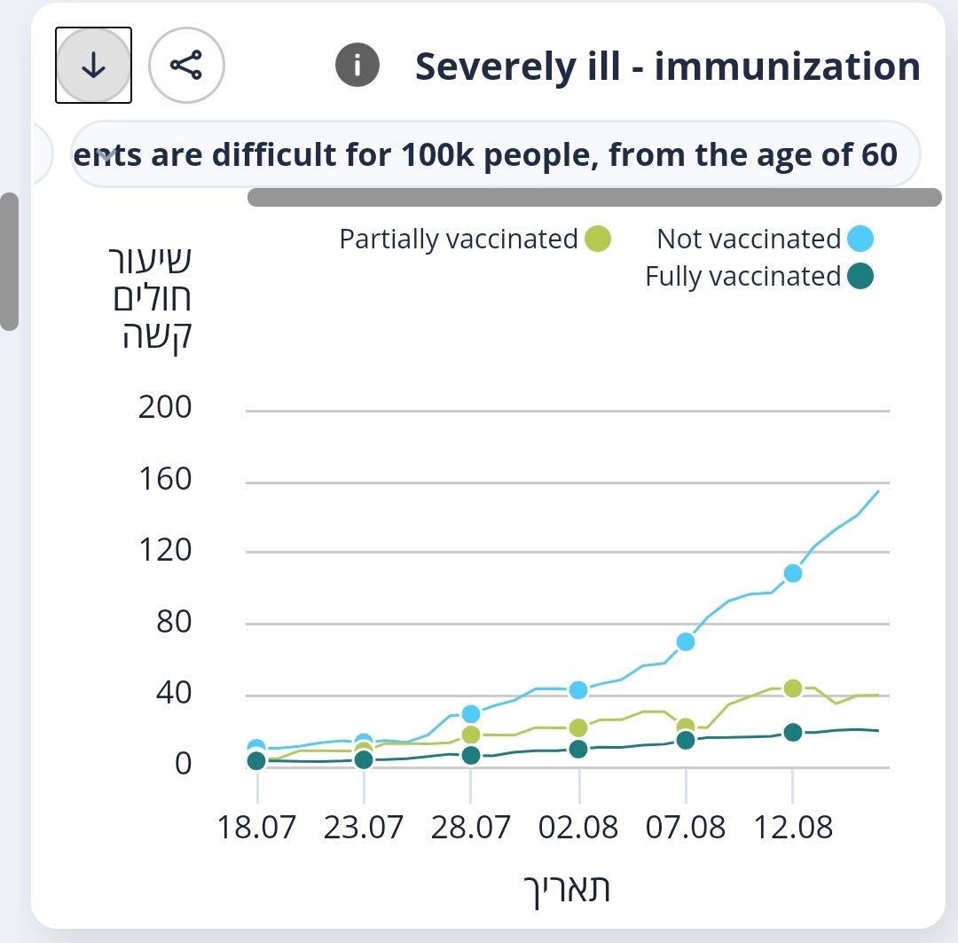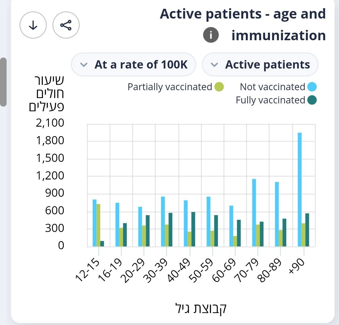 Втората таблица е за хора над 60, ако я промениш за под 60, става съвсем различна - ръста при възрастните се дължи основно на високия процент хоспитализирани средн неваксинираните над 90 години - не забравяй, отново мерят инцидентност на 100 000 популация от съответната група, а не абсолютни цифри, и тъй като неваксинираните в тази възрастова група са много малко, дори и 2-3 от тях в болница вдигат много стойността на 100 хиляди.