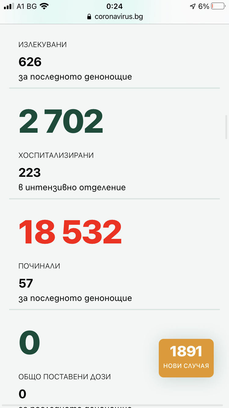 1891 нови случаи , 57 починали, 223 в интензивни отделение.Но явно няма значение,  на народът му се живее, защо да мисли за утре. Мерки - защо? Свободата е преди всичко.