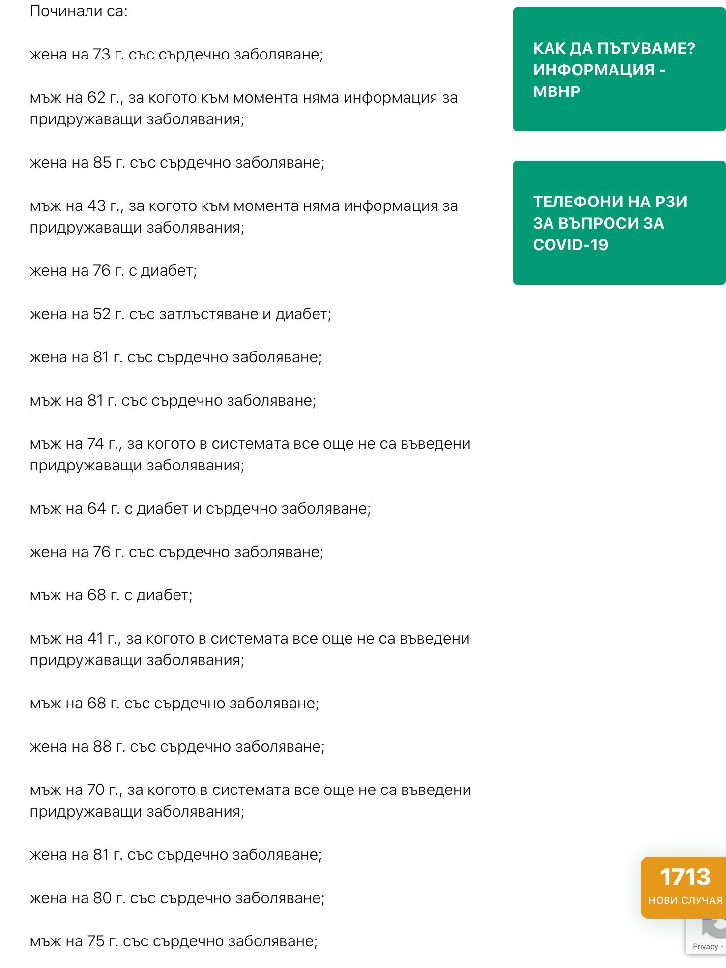 В България по статистика има в момента 200.000 човека с онкологични заболявания.. Много е ниска възрастта на починалите, чак сега обърнах адекватно внимание. Не видях някоя друга страна толкова подробно да води списък на придружаващите заболявания в другите чужбинни как е? В Австрия не пишат такива подробности. Което пак ме води към мисълта, че внушават, че умират хора с тежки други заболявания. Сърдечни обаче се водят и проблемите с кръвното например. Хронични неврологични могат да са например и мигрените.