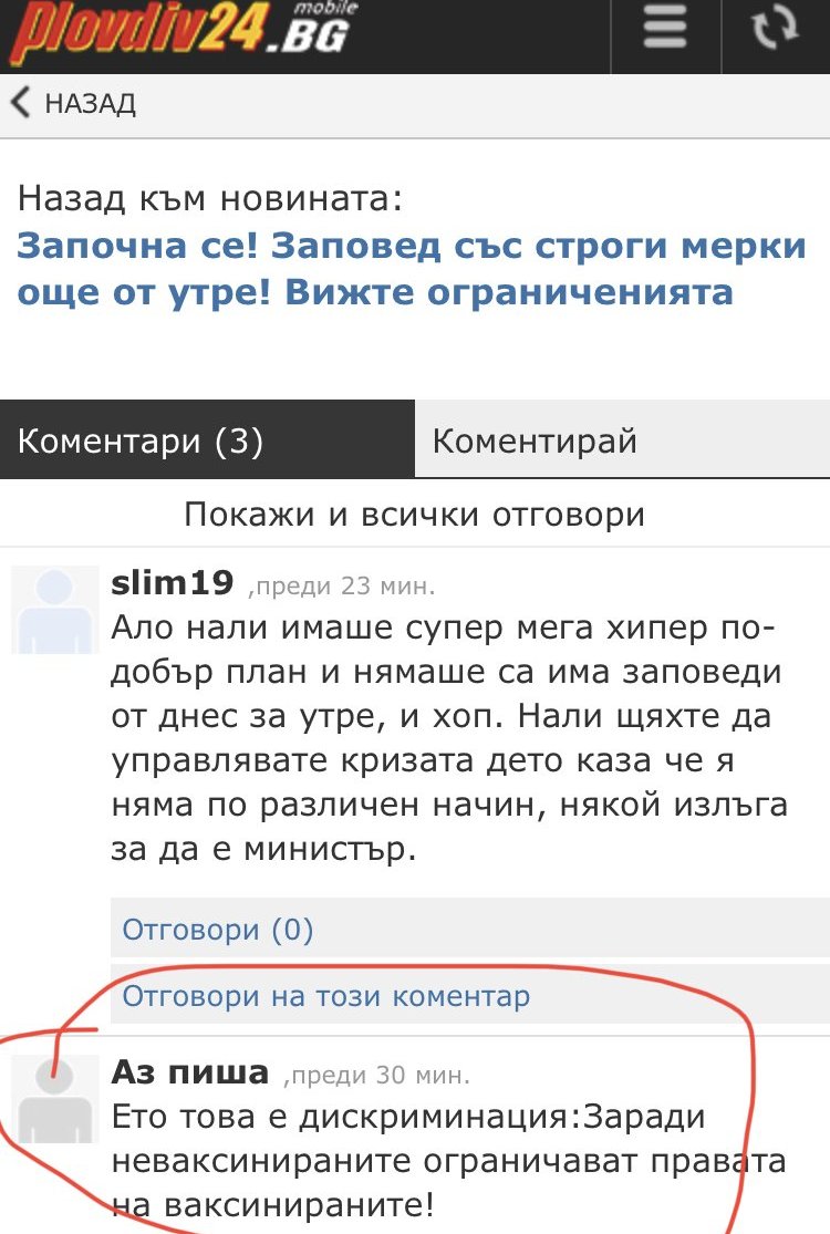 Мен лично, ме навежда фактът, че около мен вече има два случая на доброкачествени образувания у възрастни хора, наблюдавани с десетилетия и сега след ваксината превърнали се в злокачествени. Единият е свекър ми, другият - вуйчото на моя приятелка, за когото научих днес. Личният лекар на вуйчото е отказал да му сложи ваксина, предвид образуванията и рискът, свързан с тях. Дядото се разярил и заплашил, че ще го докладва, задето ми отказва ваксина. Отишъл при друг, ваксинирал се и след месец вече е раково болен пред операция. Както се е опасявал лекарят му.