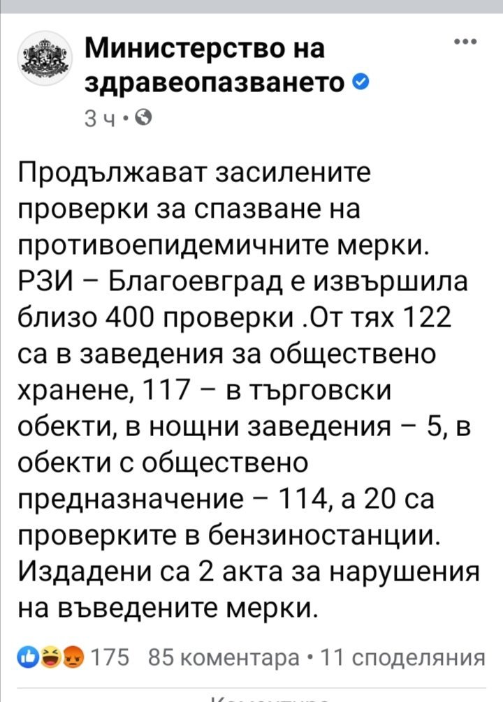Така като чета, спред МЗ мерките у нас се спазват на 99.9 процента.