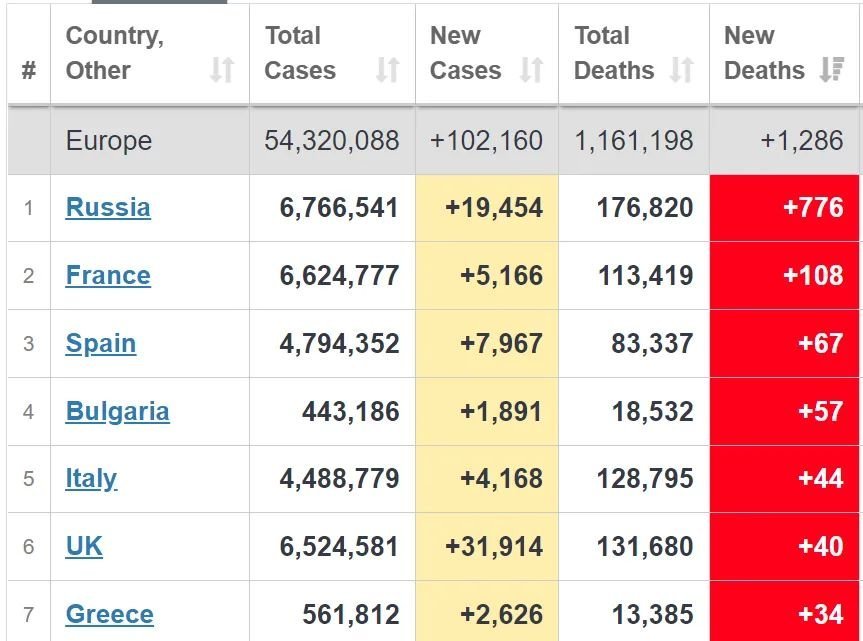 Вижда се, че разполагаш с голям ресурс от време. За да допринесеш за темата, можеш ли да извадиш заразените, хоспитализираните, интензивните и починалите  в Испания, Израел и България за последните 4 седмици и ще сравняваме съотношения (заразени преди 3-4 седмици със смъртни случаи за последната) да видим дали пък няма да е добре да сме като тях. Ето една картинка за отскок - виж внимателно new cases - deaths, при положение, че испанците слизат от върха и сега би трябвало още да са точно в пикови стойности на смъртността спрямо 30 000 заразени дневно. А ние едва почваме да се качваме и нашите смъртни случаи са спрямо 400-500 заразени.