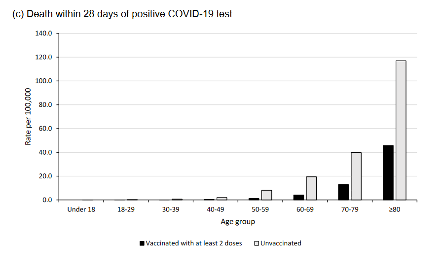 За поредна седмица англичаните публикуват данни за ефективността на ваксините, и за поредна седмица има интересни данни. Населението е разделено на ваксинирани и неваксинирани, и показват какви са бройките съответно за 100 000 дупи от всяка група.