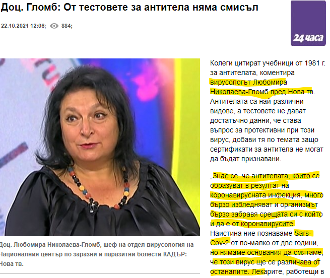 Хора, на кого да вярваме. И двамата са най-добрите специалисти по Ковид в България. Доц. Гломб е шеф на отдела по вирусология в НЦЗПБ, а доц. Атанасов е шеф на отделението по Ковид в Пирогов. Единия знае всичко за вирусите, другия лекува болни от Ковид хора всеки ден, постоянно. Единия твърди, че организма бързо забравя за срещата си с Ковид и затова можем да караме Ковид по няколко пъти годишно, другия казва, че имунитета е стабилен и няма преболедувал човек от Ковид, който пак да се е заразил. Какво става, кой е прав???