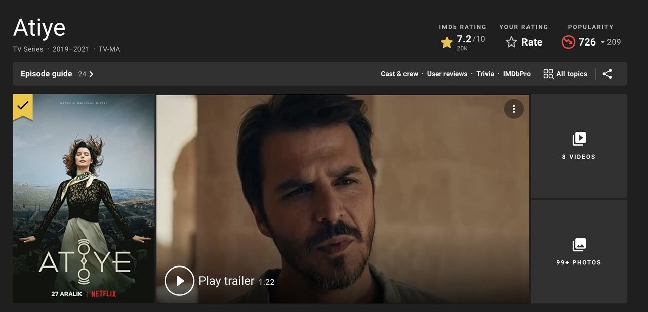 Отметим также увеличение интереса к будущему проекту Нетфликс История подводной лодки. Впрочем, это не удивительно, ведь в сериале снимается один из главных любимцев любителей турецкой продукции во всем мире Кыванч Татлытуг.