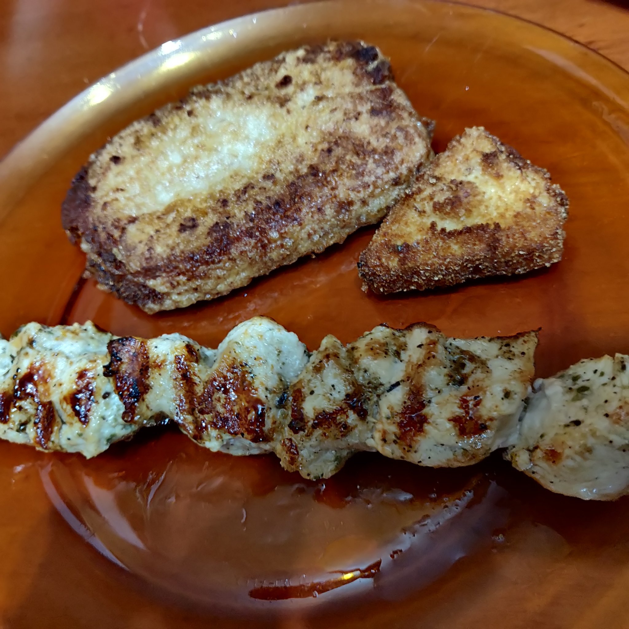 Кашкавал и топено сирене пане, пилешко шишче
